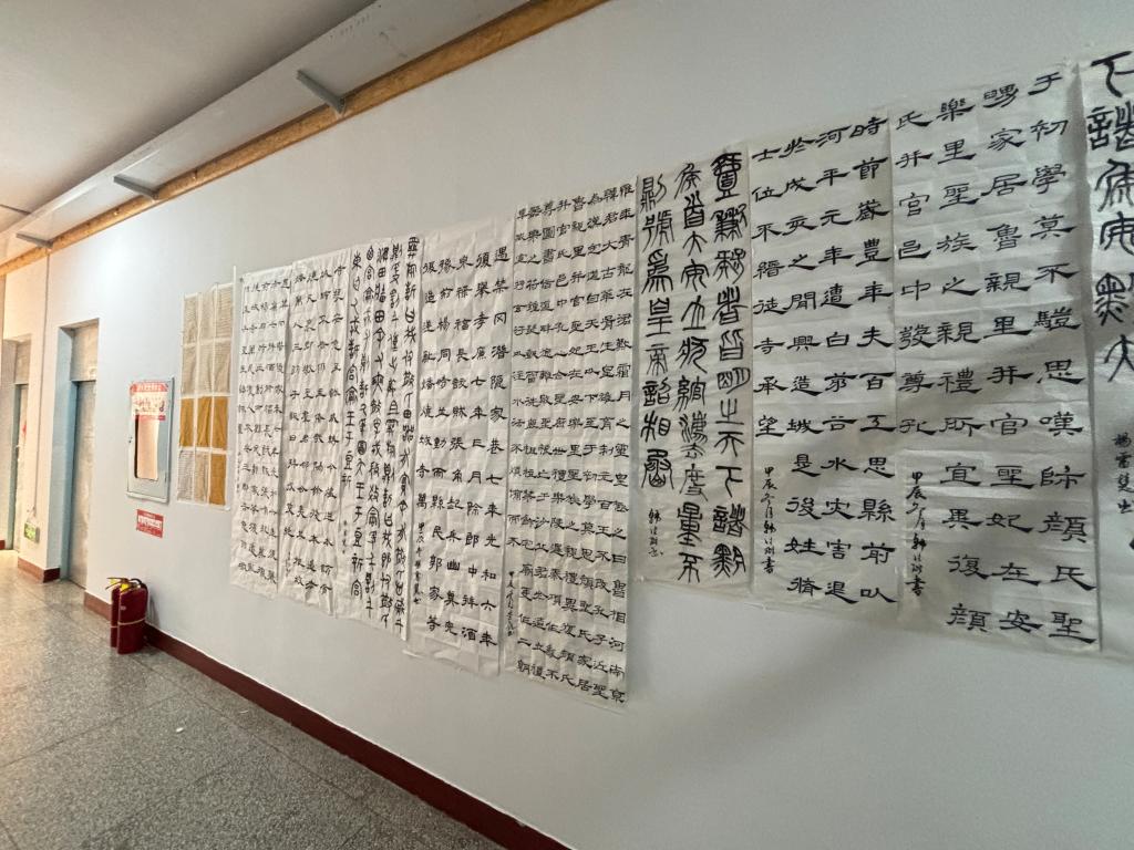 为提升师范生教学技能,弘扬中华优秀传统文化,自今年9月起至11月22日,美术学院品轩书法社团利用晚自习的时间,精心组织2023级、2024级师范生开展三笔字(毛笔字、钢笔字、粉笔字)技能训练活动,并于11月23日至30日,在尚行楼四楼开展“墨香蕴美育,三笔书芳华”美院特色晚自习与师范生三笔字训练成果展。