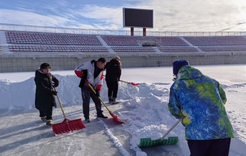 近日海拉尔区出现强降雪天气。气温骤降、大雪纷飞,导致校内路面以及运动场地大量积雪,为保障学生安全和冰场的正常使用,体育学院(冰雪运动学院)于11月28日上午在东山田径场内开展扫雪志愿服务主题党日。学院党总支书记胡日查毕力格、副院长林剑冬、教师党员以及学生党员共同参加活动。