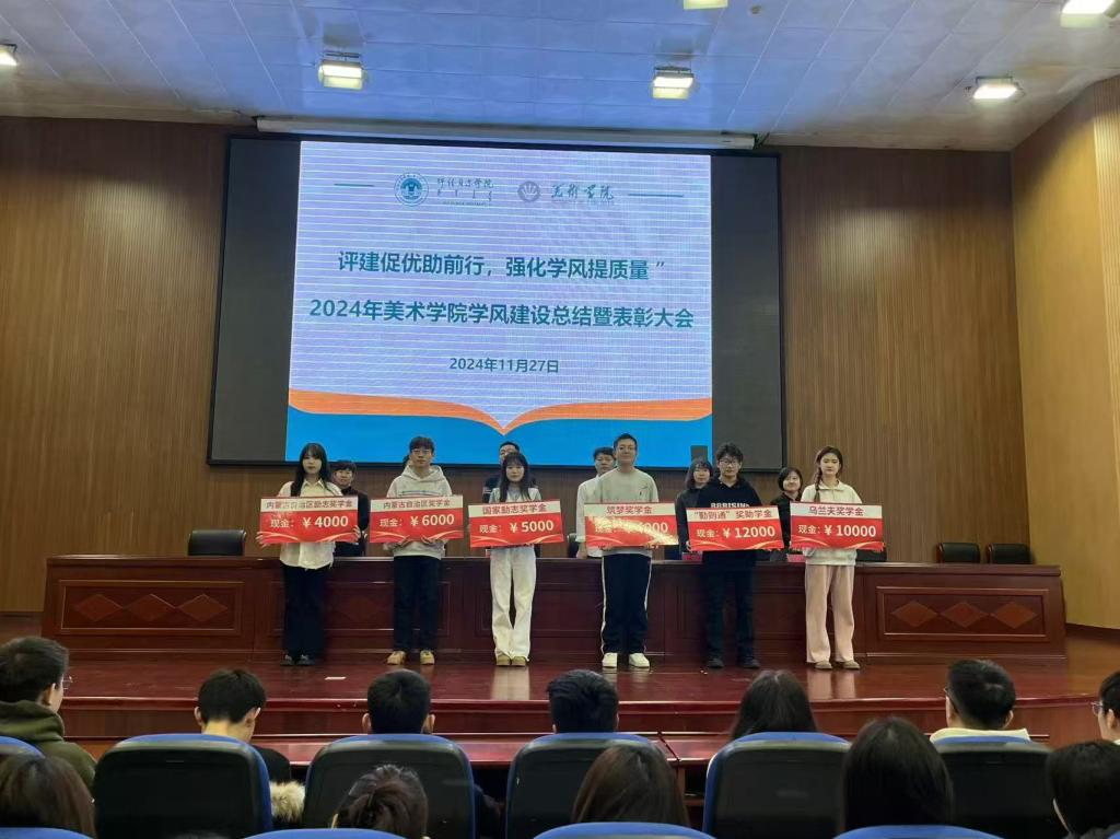 学院党总支书记巴达日呼在学风建设总结表彰大会中指出,一年来,学院学风建设始终以学生为中心,以教风带学风、以考风正学风、以管理促学风、以活动育学风、以榜样树学风,齐抓共管,学院学风建设取得了良好成效。他强调,一要加强安全意识,把安全教育工作作为重中之重,安全教育是保障学院师生生命财产安全、维护校园和谐稳定的关键防线,要贯穿于学院的日常管理与发展的始终。二要关注学生的学业发展,不仅表彰在学业成绩上表现突出的学生,也要对在艺术实践、创新创业、社会实践等方面取得优异成果的学生给予充分肯定和奖励。三要养成良好的行为习惯和综合素质,这是学生成长成才的重要保障,引导学生自觉遵守学校的各项规定,培养自律意识和责任感,将所学知识运用到实际生活中,进一步促进学生全面发展,从整体上提升学院的学风建设水平。