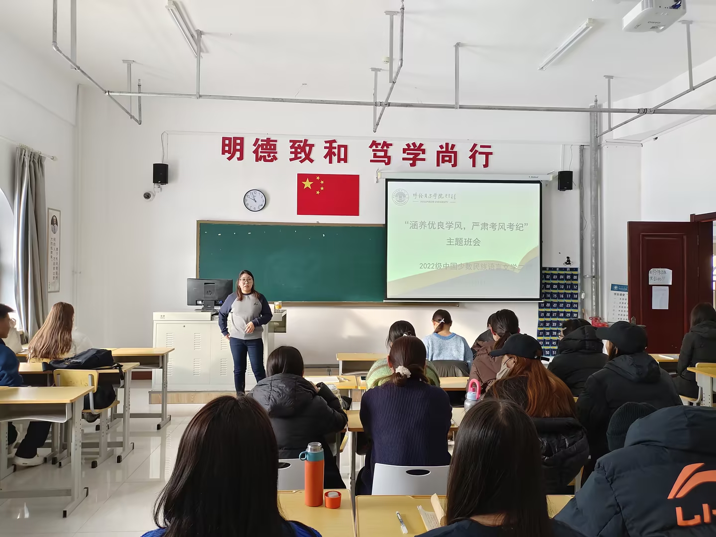为了进一步强化优良学风建设,共同营造一个公平、公正、诚信的考试环境,蒙古学学院于12月初积极组织各班级开展了“涵养优良学风,严肃考风考纪”主题班会。班会由各班学业导师主持,全体学生参加。