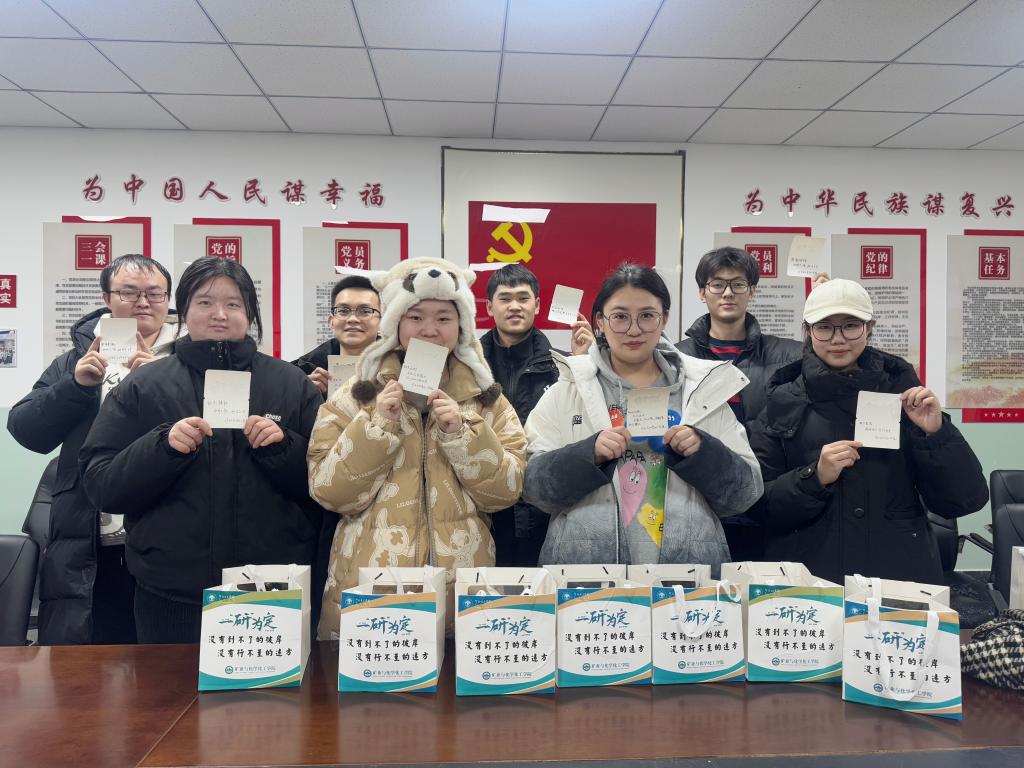 活动中,学院领导和老师为考研学生发放满载祝福与鼓励的“考研福袋”,有寓意着“前程似锦”的精美手提袋,前途“旺旺”的旺旺仙贝,“学业有成”的孔庙祈福主题签字笔,“玛”到成功的沙琪玛,心想事“橙”的甜橙,“长风破浪”的精美上岸贺卡等,这些礼品寓意深刻,饱含真情。收到心意满满的“福袋”后,同学们表示学院的暖心举动是对自己最大的鼓舞,大家将不负学院的殷切期望,以更加饱满的热情和坚定的信念投入最后的备考中,交上一份满意的答卷。