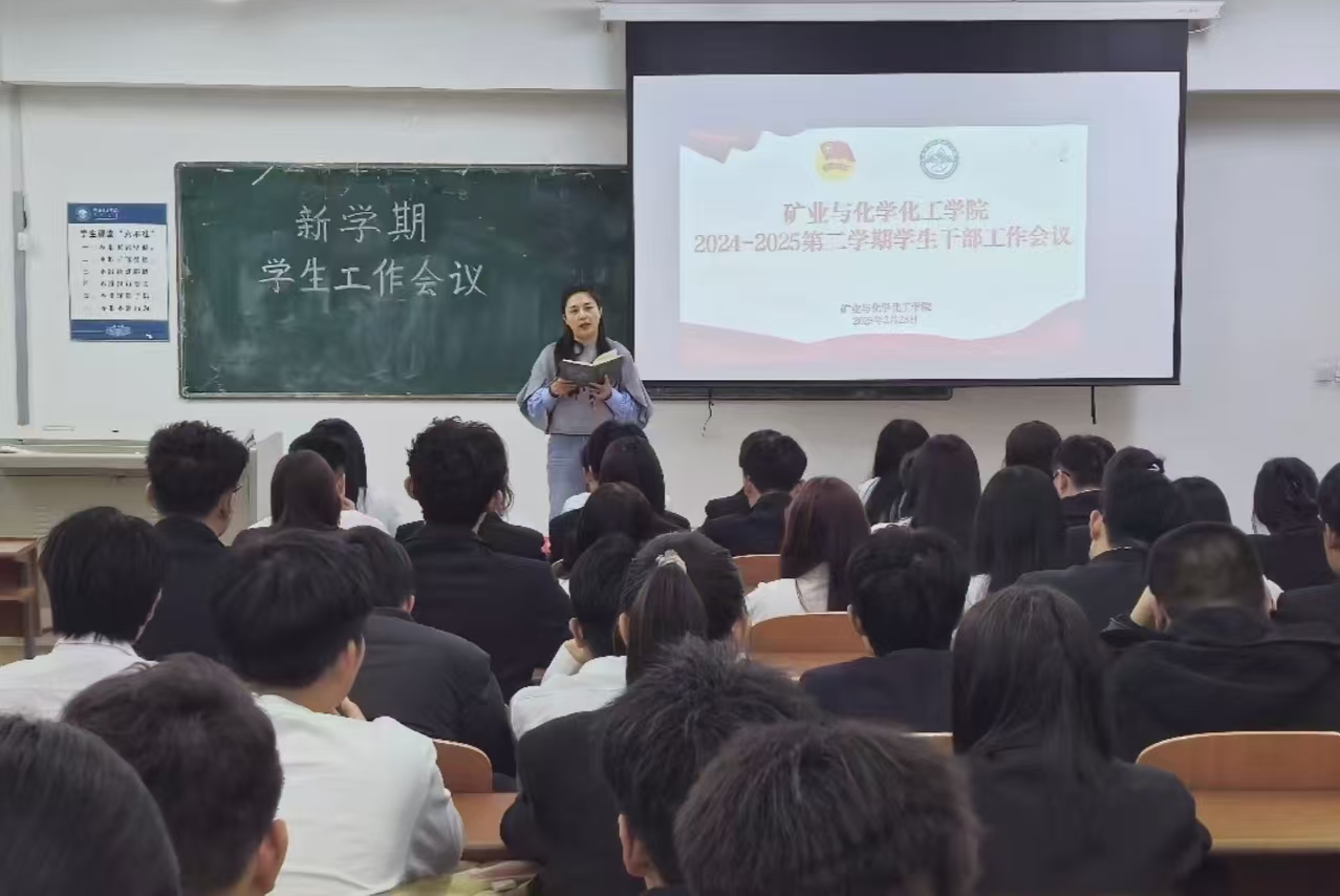 为清晰规划新学期工作布局,有效提升各部门间的凝聚力,确保学生工作有条不紊地开展,2月28日晚,矿业与化学化工学院在科技楼323教室组织召开2024-2025学年第二学期学生干部工作会议,会议由团学办公室副主任、团总支书记闫微主持,团总支、学生会全体成员、青协部门负责人及社团负责人参加。
