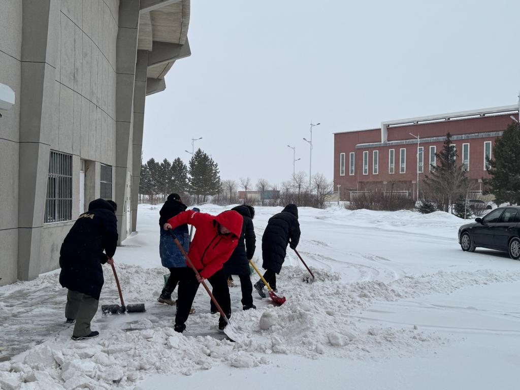 为了保障师生的安全出行,确保校园的正常秩序,体育学院(冰雪运动学院)师生们迅速行动起来,组织了“青春志愿行,扫雪暖人心”主题团日。无论是朝气蓬勃的学生,还是经验丰富的老师,都踊跃参与其中,大家纷纷拿起铁锹、扫帚等工具,化身“扫雪卫士”,准备为校园的通畅贡献自己的力量。经过师生们的不懈努力,校园道路上的积雪终于被清理干净,原本被白雪覆盖的路面重新展露出来,为师生们开辟出了一条条安全通道。