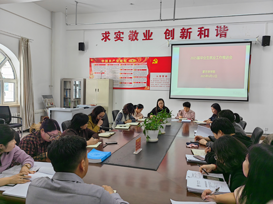 3月12日下午,在崇文楼B221会议室,蒙古学学院召开例会,对2025届毕业生就业工作和本科教育教学审核评估工作进行再部署再推进。会议由学院院长白秀峰主持,全体教职工参会。