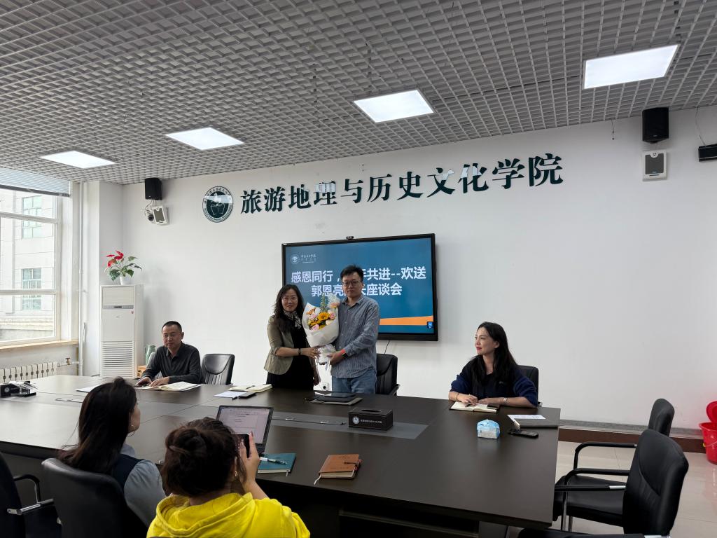 在内蒙古师范大学委派到旅游地理与历史文化学院挂职的副院长郭恩亮挂职期即将结束之际,4月16日下午,旅游地理与历史文化学院在崇文楼B座321会议室举行“感恩同行,携手并进”欢送郭恩亮副院长座谈会。学院领导班子成员和部分教职工参加了座谈会。