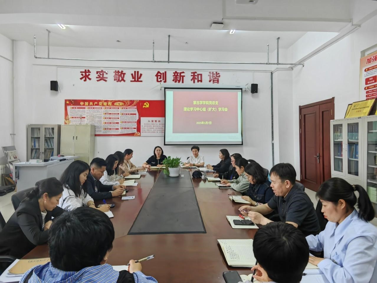 为深入贯彻落实国家教育发展战略,精准把握教育发展新方向,5月7日下午,蒙古学学院党总支在崇文楼B221会议室召开理论学习中心组扩大学习会议,专题学习中共中央、国务院印发《教育强国建设规划纲要(2024—2035年)》;内蒙古自治区党委、自治区人民政府印发《关于贯彻落实〈教育强国建设规划纲要(2024—2035年)〉加快建设教育强区的意见》。学院全体教职工参加学习,会议由学院党总支书记格根塔娜主持。