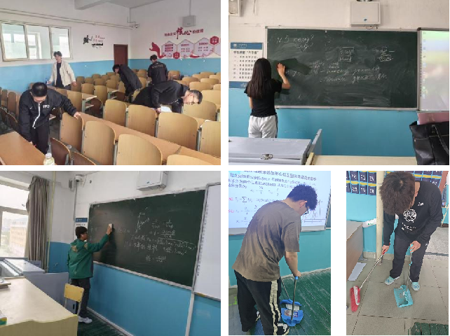 活动当天,学生志愿者们对课桌死角、地面污渍、门窗积灰等进行彻底清理,对桌椅松动、教学设备故障等问题逐一排查报修。对教室卫生、设备维护、文化氛围等进行全面优化,以实际行动营造文明、整洁、有序的教学环境,为高质量完成审核评估注入鲜活动力。