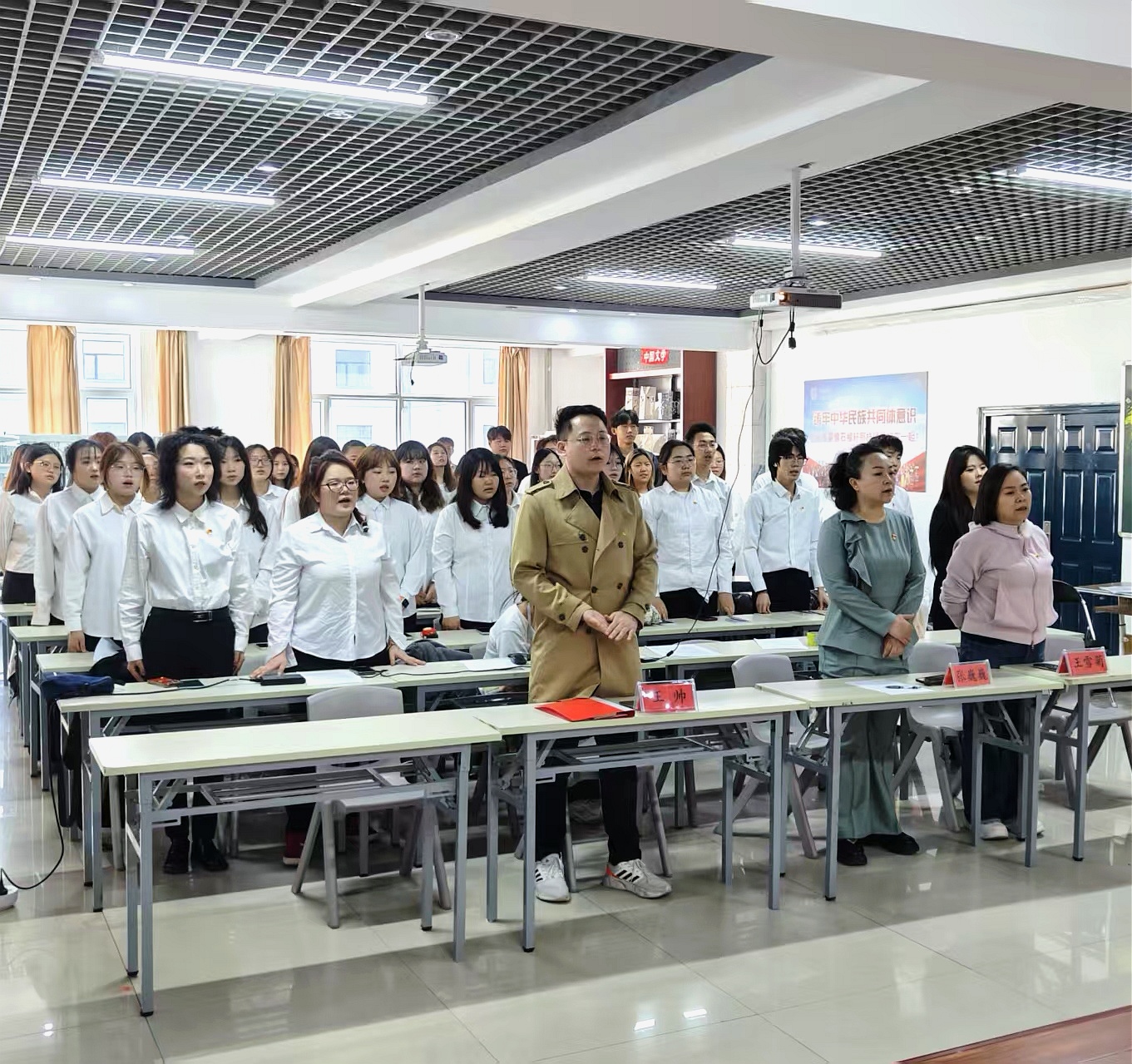 入团仪式结束后,王帅以“五四精神,青春飞扬”为主题,为全体团员讲授专题团课。 从五四运动的历史背景、精神内涵讲起,结合新时代青年的使命与担当,深入阐述了五四精神的时代价值。 同时带领全体团员深入学习《中国共产主义青年团纪律处分条例》。 结合实际案例,他对条例中的处分种类、处分程序及纪律要求进行了细致解读,并强调团员要严守团的纪律、规范自身言行,自觉维护共青团的先进性和纯洁性,以团员标准严格要求自己,在学习和生活中发挥先锋模范作用,勇担时代使命,用奋斗书写青春华章。