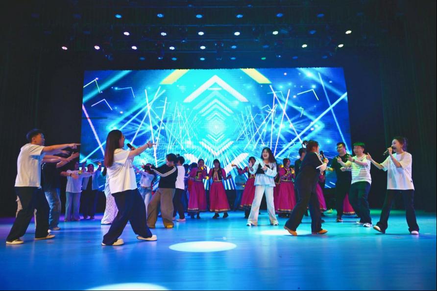进入第二篇章,张金凤、安果果等同学带来热情奔放的舞蹈《扇子爵士舞》,瞬间点燃现场气氛,将晚会推向高潮。姜宇航、马瑛晗等同学带来的小合唱《路过人间》,用温柔的歌声传递出对青春的珍惜与对未来的期许。易鑫带来的舞蹈《电子脉搏》,则用充满科技感的舞姿,诠释了当代青年对未来的探索与追求。