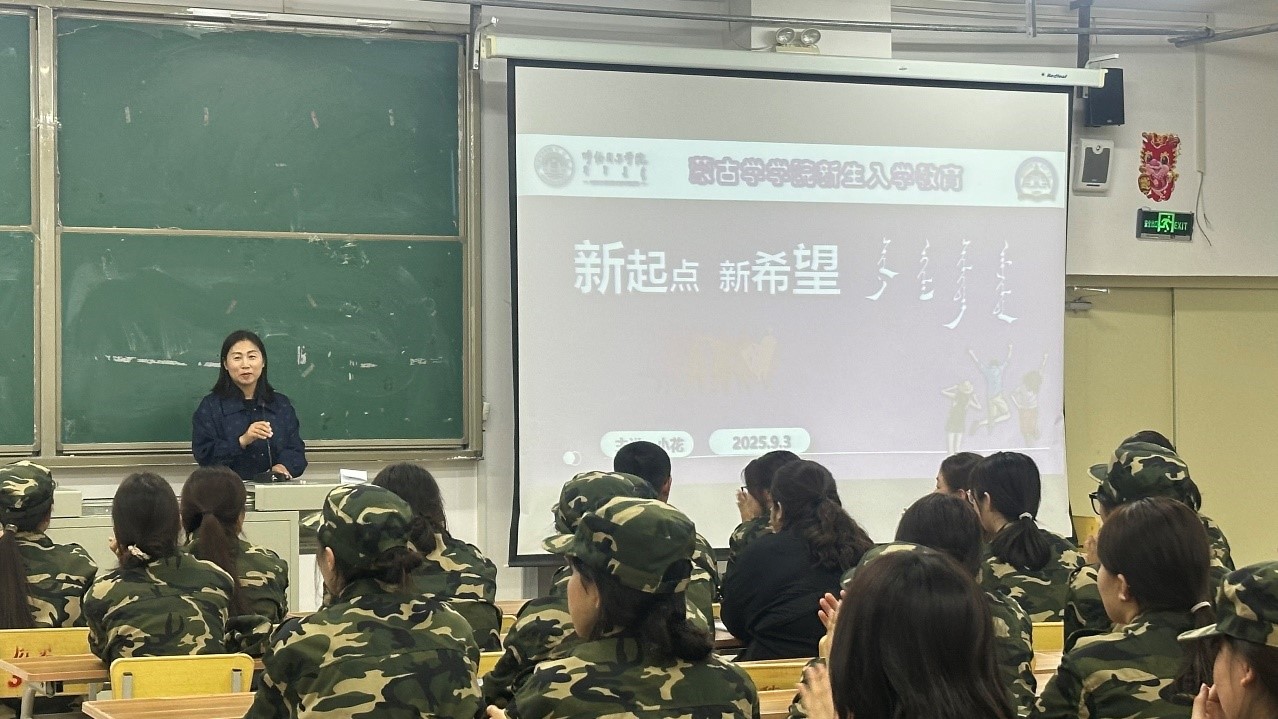 为助力新生全面了解学院、明确专业方向、规划学业,9月3日晚,蒙古学学院院长白秀峰、副院长小花分别以“认知专业、锚定未来”“新起点 新希望”为主题,为2025级非物质文化遗产保护专业和中国少数民族语言文学专业新生进行入学教育专题讲座。新生辅导员徐宇梅主持讲座。