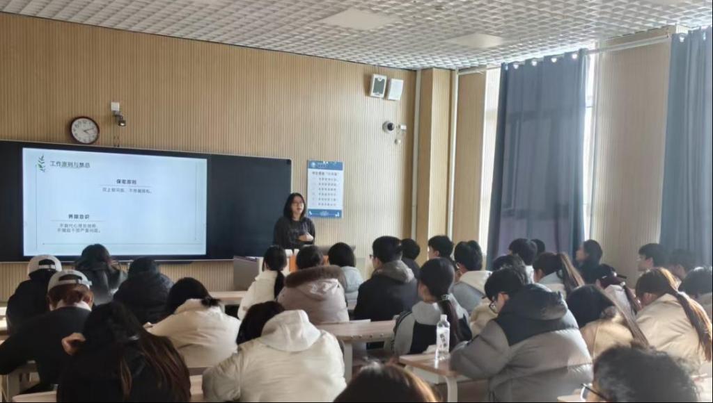 为进一步完善“学校-学院-班级-宿舍”四级心理危机干预体系,提升朋辈心理支持队伍的专业素养与履职能力,3月25日,法学与经济管理学院“聆心拂忧”心理工作室于崇文楼A409教室举办春季学期心理委员及宿舍长专项工作培训会,本次培训面向2024级、2025级全体心理委员及宿舍长,旨在通过系统培训,筑牢校园心理安全防线。