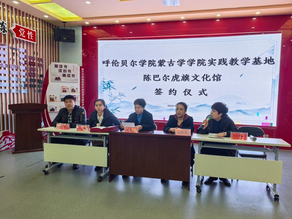 4月17日上午,蒙古学学院院长白秀峰、党委副书记孔春艳、教师胡斯乐一行前往陈巴尔虎旗文化馆,开展实践教学基地共建合作交流并举行签约仪式。