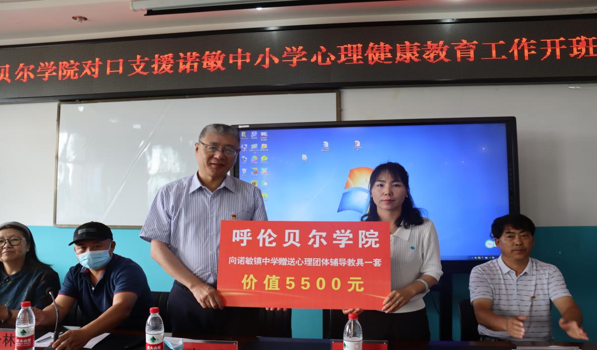 在9日的开班仪式上,李健处⻓代表世界杯官网向诺敏镇中学捐赠1套心理团体辅导教具。王晨老师和谢春辉老师分别为诺敏镇中小学心理健康专兼职教师、班主任开展了“如何引导中小学生科学应对压力”以及“和谐人际关系人类最优选择”的专题讲座。于泽老师带领全体参会教师开展了“沟通 信任 合作”为主题的素质拓展训练活动,冯旸老师就“如何培育优良团队”与各位老师进行分享交流。
