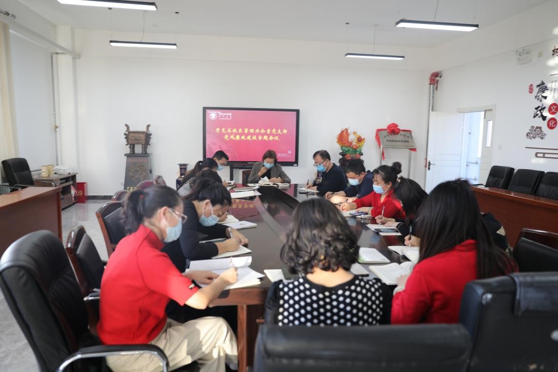会上,刘素华书记领学了党的二十大报告辅导读本《完善党的自我革命制度规范体系》。并从坚持制度治党、依规治党,健全党统一领导、全面覆盖、权威高效的监督体系,落实全面从严治党政治责任等方面,结合校区工作实际进行了体悟分享。