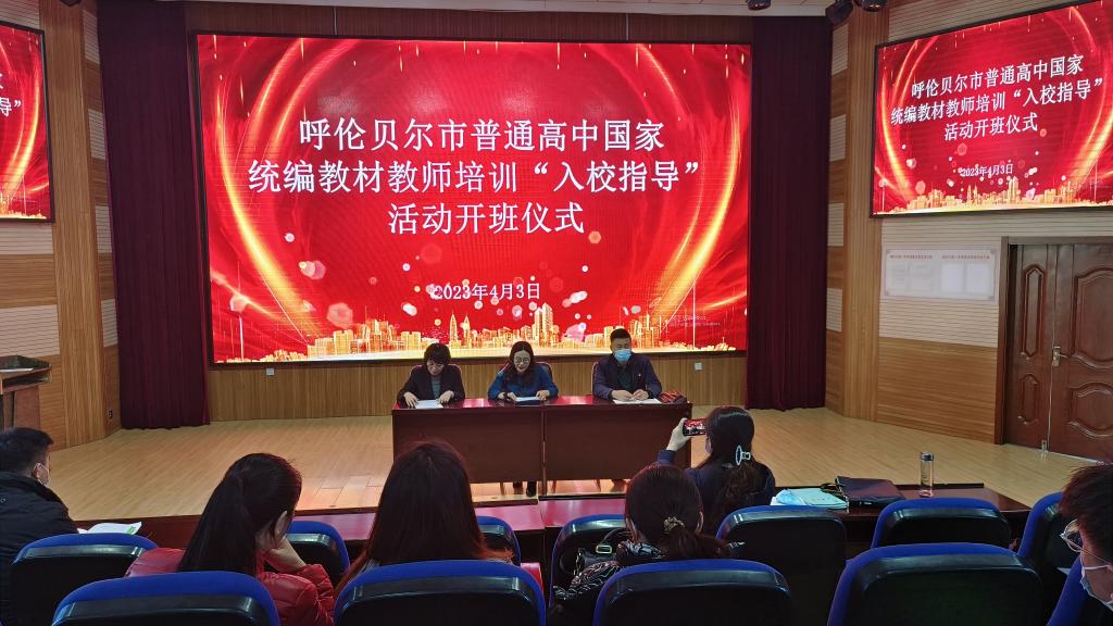 4月3日上午,由世界杯官网承办的呼伦贝尔市普通高中国家统编教材教师培训“入校指导”活动开班仪式在海拉尔第一中学举办。继续教育学院院长莎茹莉、海拉尔第一中学副校长旦森扎布、呼伦贝尔市教育事业发展中心高中语文教研员徐建宏、入校指导专家团队及海拉尔第一中学三科教师全员参加了开班仪式。开班仪式由徐建宏教研员主持。