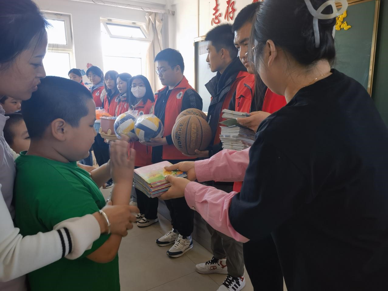 活动开始,志愿者们与孩子们进行了积极的交流与沟通,了解孩子们的日常生活、学习情况及孩子们的现实需求,将爱心化为实际行动,开展了温暖的捐赠仪式。校团委于2022年12月申请到了呼伦贝尔市红十字会所资助的项目,并用4000元项目资金购买了书籍、益智类玩具和体育用品,捐赠给了特校的孩子们并送去了最真挚的关爱和祝福。随后,志愿者们在特校的体育馆进行了清扫卫生志愿服务活动。
