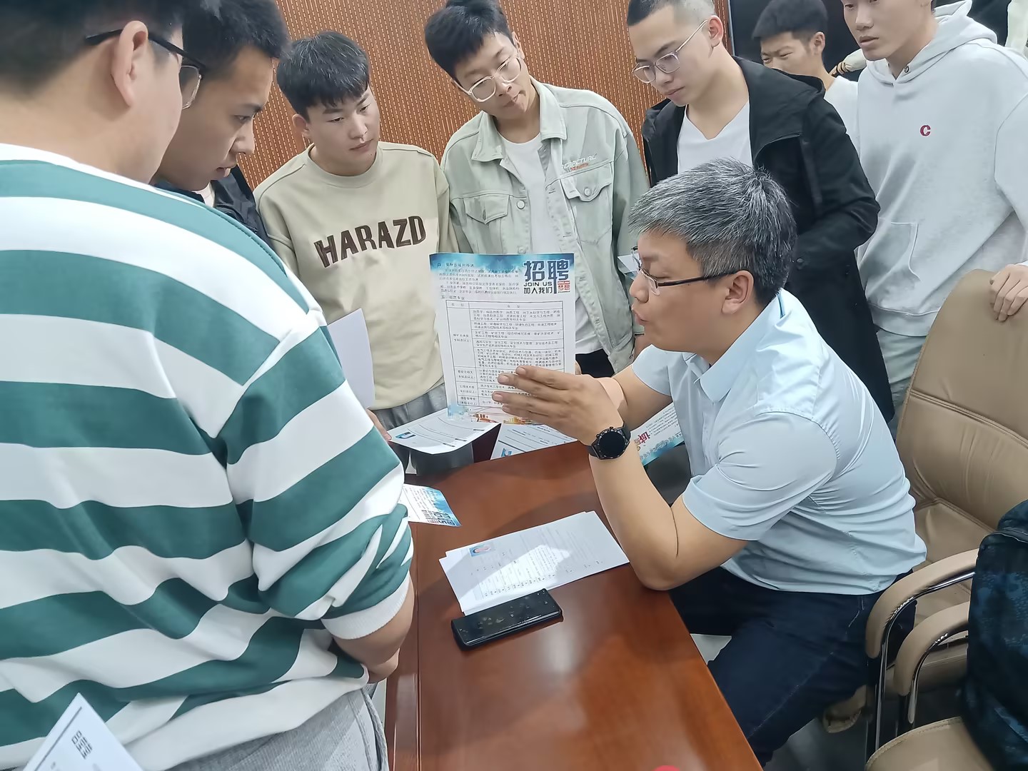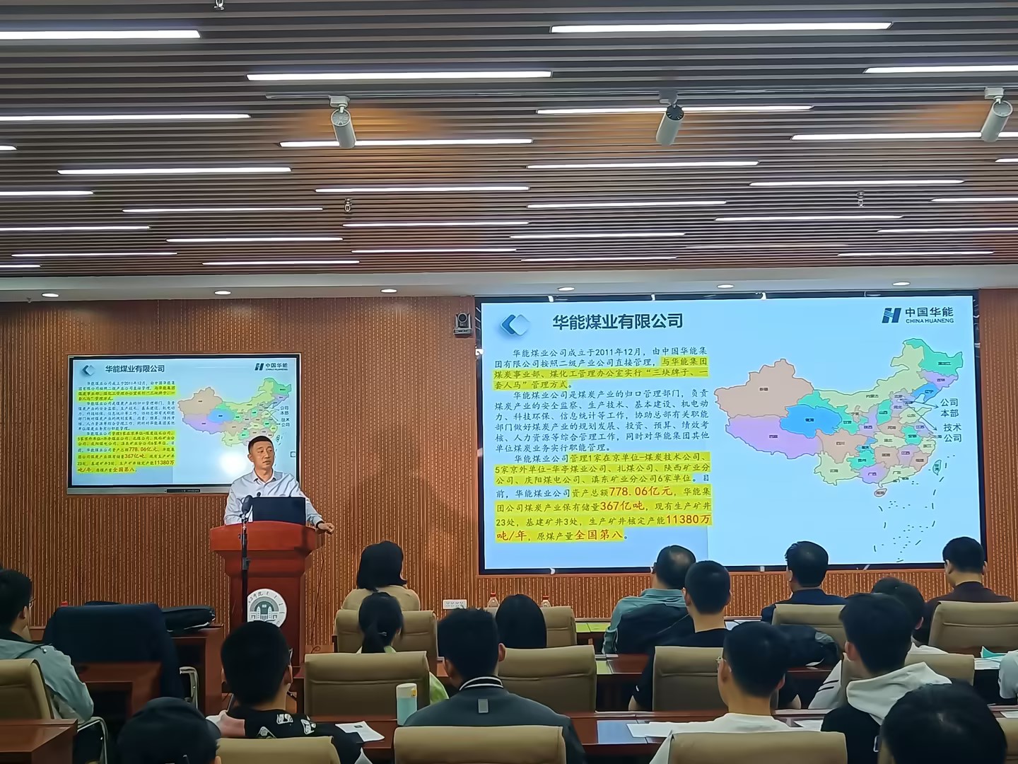 华能煤业公司人资部主任潘博以及其他分公司相关领导通过播放宣传片、PPT展视、面对面交流等方式向毕业生介绍公司的概况、职业发展方向、人才需求以及选择该单位的理由等。在各公司宣讲完成后,毕业生们积极提问、咨询,并有100余名学生现场投递了个人简历。