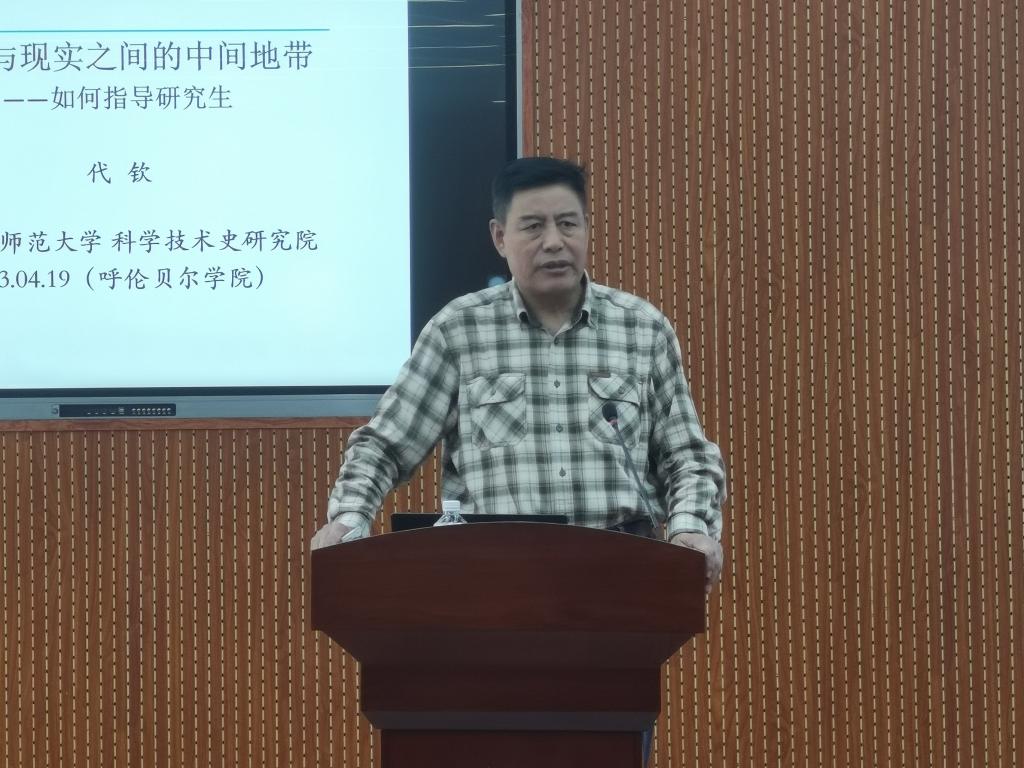 4月20日下午,在崇文楼A501会议室,世界杯官网邀请内蒙古师范大学科学技术史研究院代钦教授开展了题为《理想与现实之间的中间地带——如何指导研究生》的专题讲座培训。此次讲座是世界杯官网2023年度硕士研究生导师岗前培训系列讲座之一。讲座由研究生处处长姜明红主持,教育硕士、旅游管理硕士研究生指导教师、校外实践导师及研究生处全体教职工参加了培训。