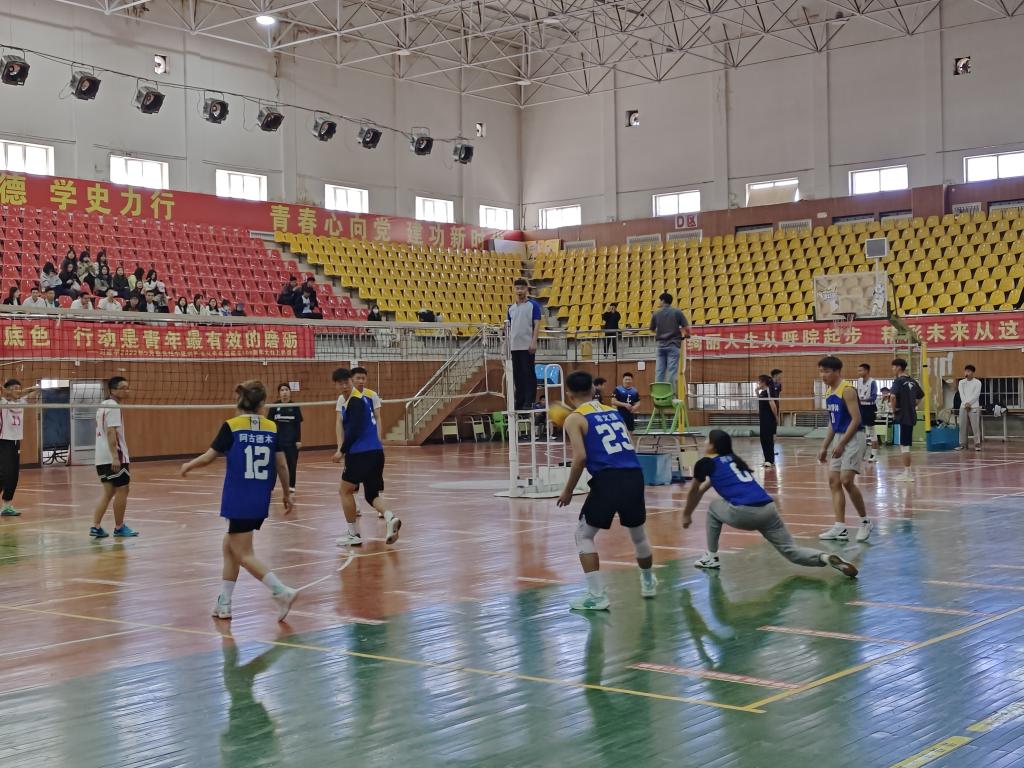 5月13日,由校团委主办,体育学院承办的美加墨世界杯官网校园文化艺术节系列活动——排球赛正式开赛。本次比赛为4男2女混合比赛,共有16个代表队参赛,比赛在山下体育馆两个球场同时进行。