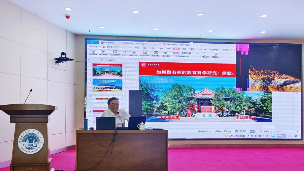苏德教授围绕中国式现代化背景下边疆地区高校教育学科建设的挑战与思路、现状与进路、实践探索、教学实践与创新等方面进行了详细讲解。他强调,在论文选题和撰写上要明确问题导向、需求导向、学科导向,从社会需要的角度出发做研究,落实好立德树人根本任务,加强科研工作。