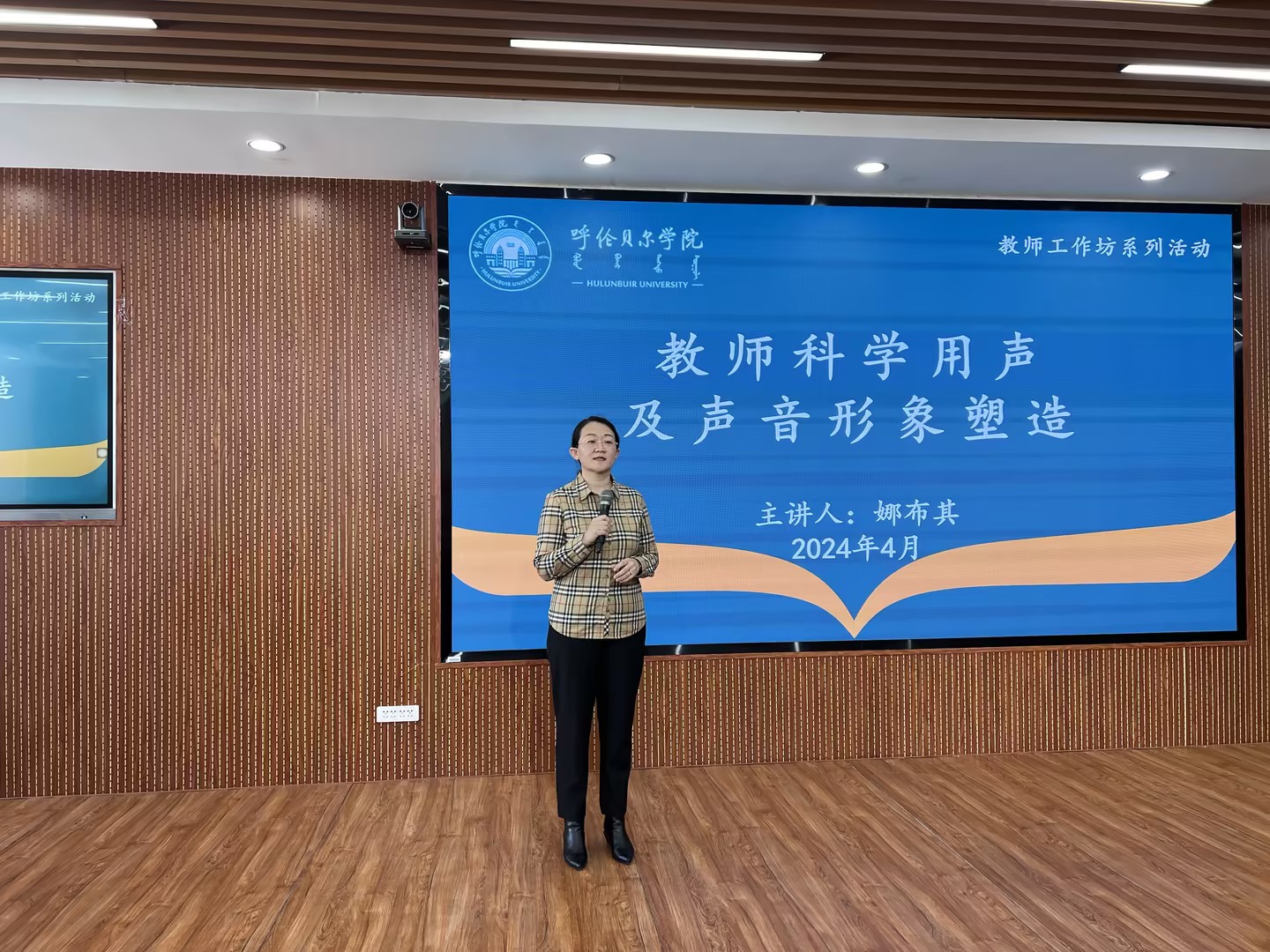 本次培训活动特邀了学报编辑部副主任娜布其副教授作为主讲嘉宾。娜布其副教授以其深厚的专业背景和丰富的实践经验,为参训教师们带来了一场精彩纷呈的讲座。她首先分析了教师在发声方面遇到的实际困境,并针对性地提出了巧妙用气、科学发声的方法和技巧。她强调了正确的发声方式对于保护教师嗓音的重要性,并分享了一些实用的嗓音保护方法。她进一步探讨了教师声音形象塑造的重要性,并指出,一个清晰、悦耳、有感染力的声音不仅能够提升教学效果,还能够增强教师的个人魅力。她通过生动的案例和实际的演练,向教师们展示了如何通过声音塑造出积极、专业、自信的教师形象。