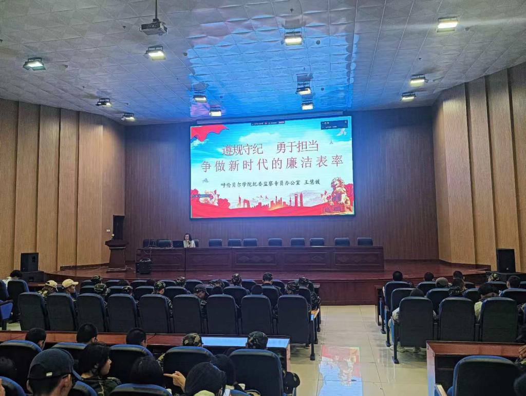 为进一步加强校园纪律建设,培养学生廉洁意识,9月20日晚,学生工作处(党委学生工作部、武装部)联合纪委监察专员办公室在图书馆四楼报告厅开展 “遵规守纪,勇于担当,争做新时代的廉洁表率”新生军事理论教育、入学教育主题讲座。本次讲座由学生工作处(党委学生工作部、武装部)杨云晖老师主持,纪委监察专员办公室副主任王慧媛主讲。