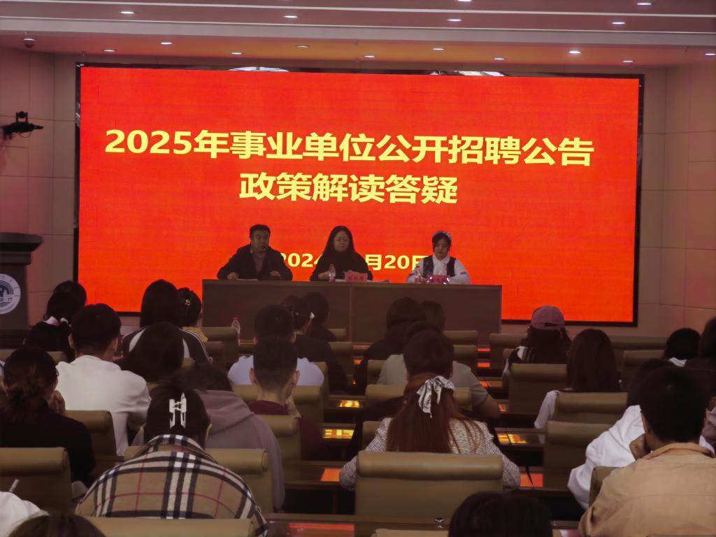 会上,主讲人详细解读了2025年事业单位公开招聘的政策要点,包括招聘原则、岗位设置、报名条件、考试安排、体检考察、公示聘用等方面的具体内容。