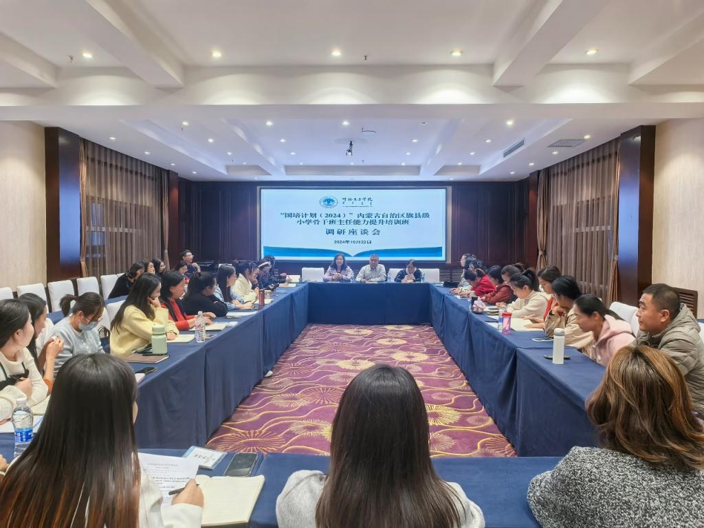 为及时了解“国培(2024)”内蒙古自治区旗县级小学骨干班主任能力提升培训班学员对培训工作的意见和建议,10月22日晚,继续教育学院召开了学员代表调研座谈会,广泛听取学员意见、建议,提高培训的质量。专家团队代表、项目管理团队成员和学员代表等40余人参加了座谈会,会议由继续教育学院副院长汪鑫主持。