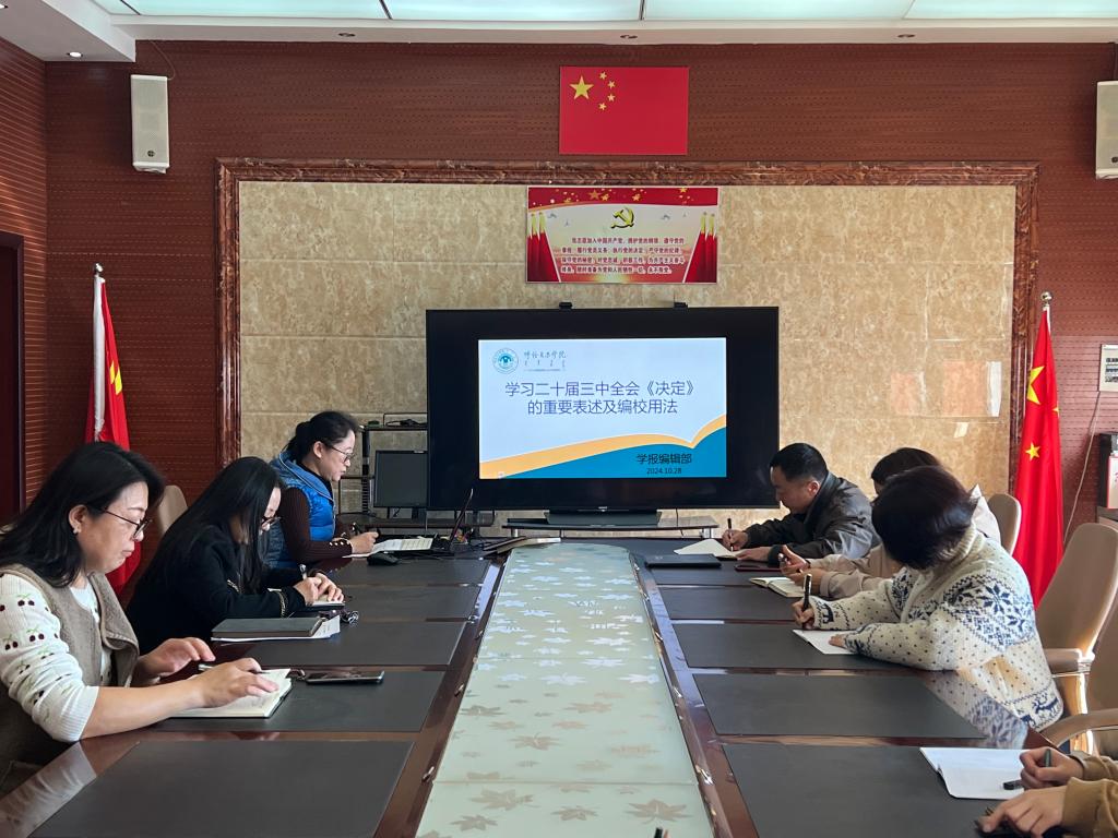 为了深入学习贯彻党的二十届三中全会精神,10月28日,学报编辑部在403会议室组织学习党的二十届三中全会《中共中央关于进一步全面深化改革、推进中国式现代化的决定》(以下简称“《决定》”)的重要表述及编校用法。