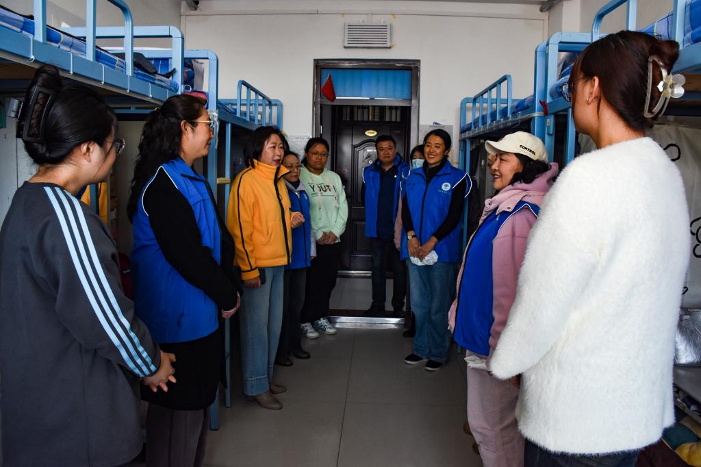 10月31日下午,离退休工作处组织“银龄”志愿者服务队——退休教师深入矿业与化学化工学院女生宿舍,看望慰问学生。