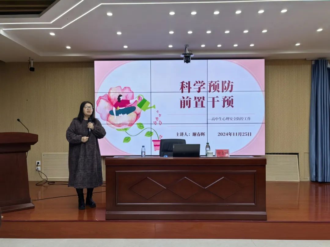为加强世界杯官网心理健康教育示范中心面向中小学对口支援工作,推动呼伦贝尔地区大中小一体化机制建设落地生根,提升高中班主任在学生心理危机干预中的应对能力,做到早预防、早发现、早干预,为学生提供更精准有效的心理健康服务,11月25日,学生工作处(党委学生工作部、武装部)副处长谢春辉深入海拉尔第一中学开展《科学预防 前置干预——高中生心理安全防控工作》专题讲座。海拉尔第一中学党委书记宏伟,副校长崔鹏清及全体班主任、实习班主任、心理教师参加培训。