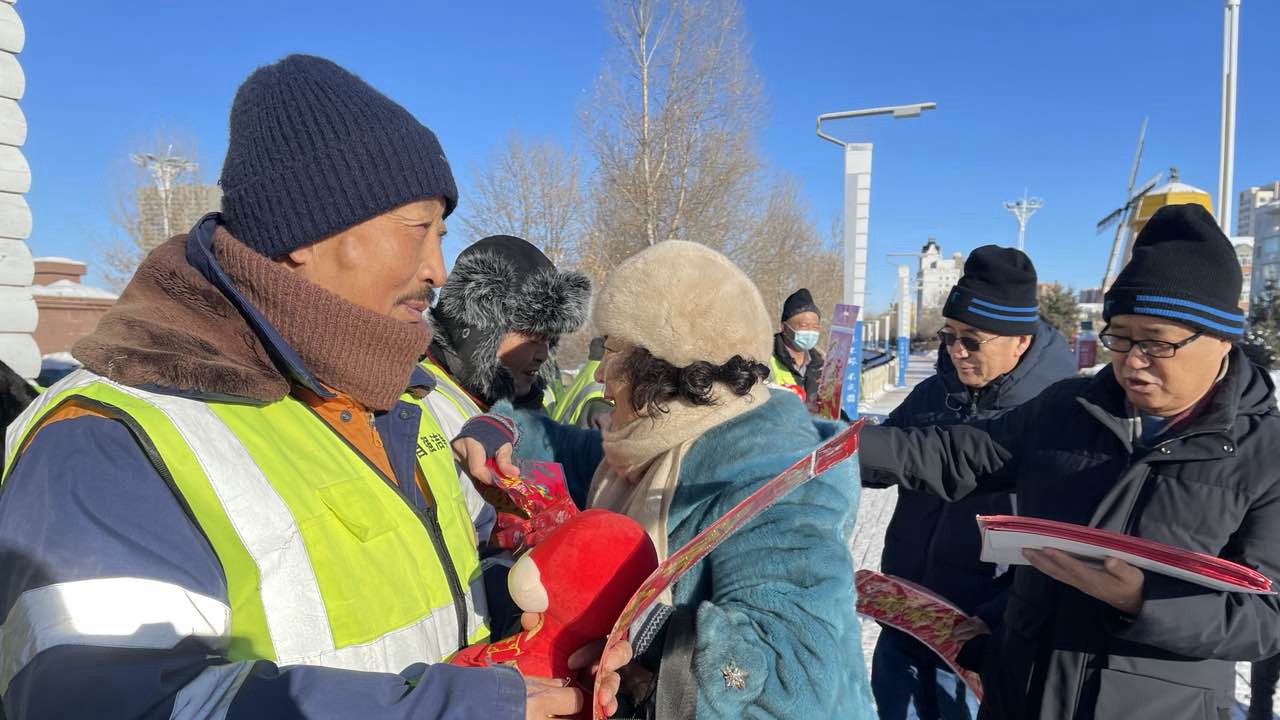活动现场,“银龄”志愿服务者向一线环卫工人致以诚挚问候和美好祝福,并送上春联、福字、红灯笼、蛇年吉祥物等慰问品,感谢他们在平凡工作岗位上辛勤耕耘,默默奉献,用勤劳的双手维护海拉尔区的整洁与美丽。