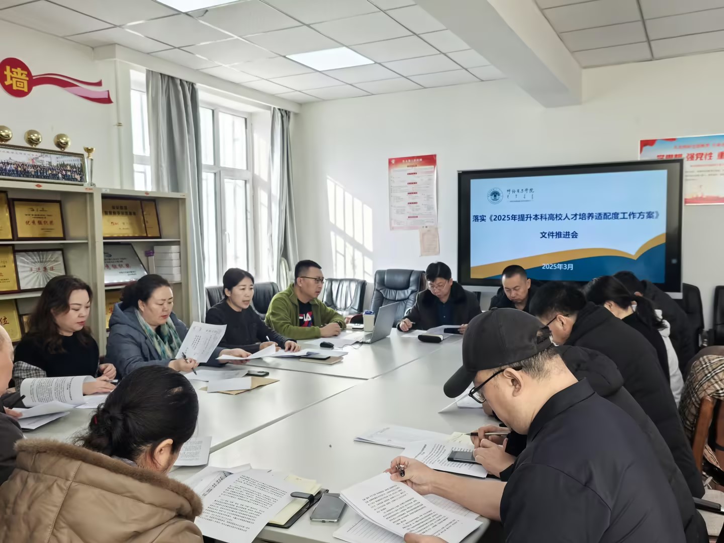 为落实提升本科高校人才培养服务自治区重点行业产业适配度的要求,3月6日上午,教务处在逸夫楼211会议室召开关于落实《2025年提升本科高校人才培养适配度工作方案》推进会。教务处处长张桂芝、副处长王继钢,各学院负责人参加会议。会议由张桂芝主持。