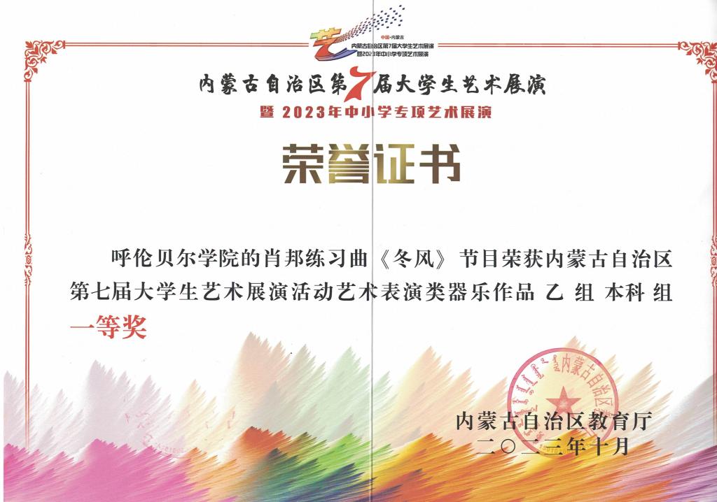 主题教育|世界杯官网学子王梓宁荣获内蒙古自治区第七届大学生艺术展演器乐组一等奖