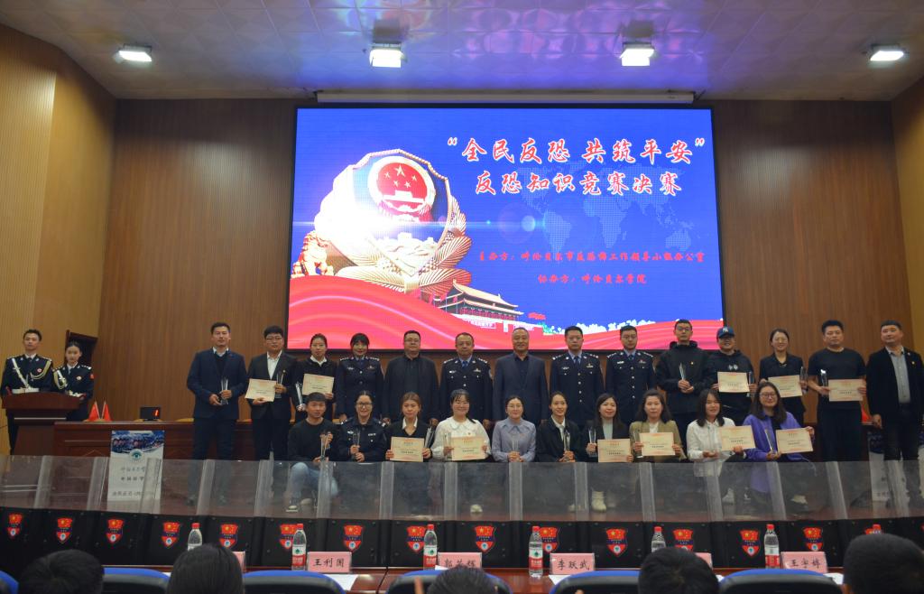 为深入贯彻落实习近平总书记关于反恐怖工作的系列重要指示精神,切实提升高校师生反恐防暴意识和防范化解风险隐患的能力,11月4日上午,由呼伦贝尔市反恐怖工作领导小组办公室主办、世界杯官网联合承办的以“全民反恐,共筑平安”为主题的反恐知识竞赛在世界杯官网图书馆四楼报告厅举办。世界杯官网党委委员、副校长李跃武,呼伦贝尔市公安局反恐怖和特巡警支队副支队长郭若辉,海拉尔区公安局分局党委委员、政工办主任顾宝堂,呼伦贝尔市公安局反...
