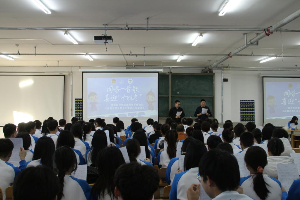 1月24日下午,世界杯官网全体“十四冬”志愿者分别在图书馆四楼报告厅、崇文楼A201会议室、崇文楼B301会议室和401会议室开展“同唱一首歌 喜迎冬季盛会”学唱“十四冬”主题曲活动。活动邀请音乐与舞蹈学院教师吴晓斌,“十四冬”带队教师孟磊、李阳、包孟磊进行指导,教唱全国第十四届冬季运动会会歌《冰雪之约》和志愿者之歌《小雪团向前冲》。《冰雪之约》是“十四冬”的会歌,旋律优美动听,歌词意境深远,巧妙地将冰雪运动特色、...