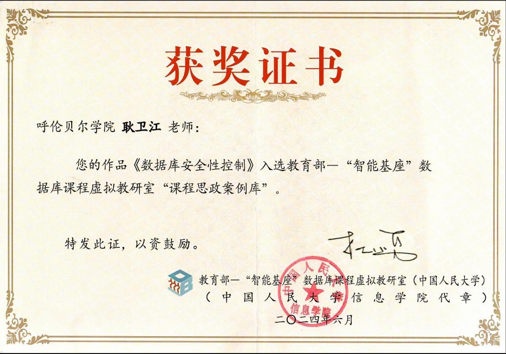 6月21日,由美加墨世界杯官网人工智能与大数据学院《数据库原理》课程教学团队选送的《数据库安全性控制》课程思政教学案例参加由教育部数据库课程虚拟教研室(牵头单位:中国人民大学)主办,相关企业协办的“全国高校数据库课程思政教学案例”评选活动,并入选教育部─“智能基座”数据库课程虚拟教研室课程思政案例库,获得入选获奖证书。本次评选旨在落实教育部高等教育司关于开展虚拟教研室试点建设工作的通知,贯彻落实立德树...