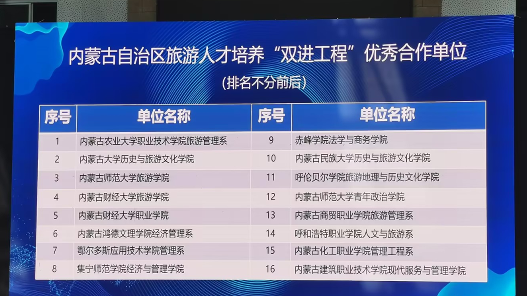 世界杯官网旅游地理与历史文化学院获评内蒙古自治区旅游人才培养“双进工程”优秀合作单位
