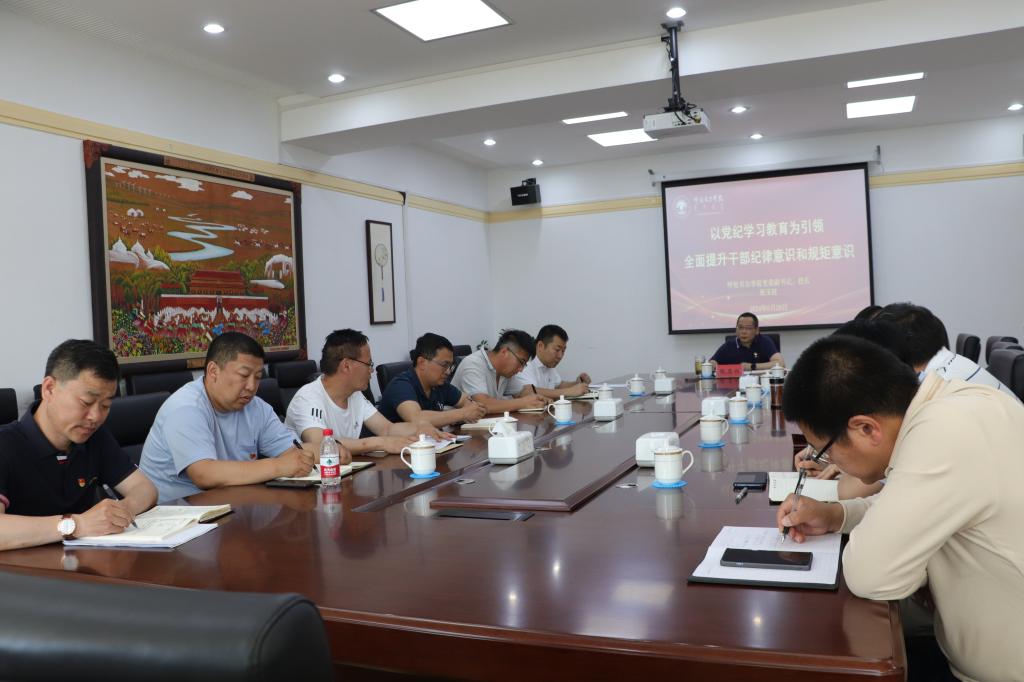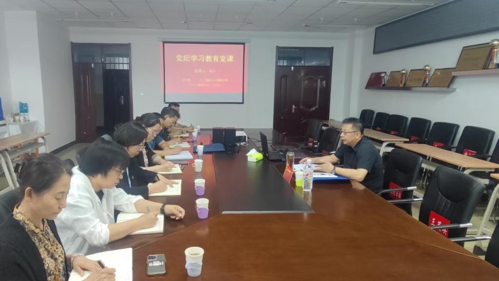 为推进党纪学习教育走深走实,切实增强教职工党员的纪律意识和规矩意识,6月26日下午,校党委副书记、校长张玉柱在逸夫楼419会议室,以《以党纪学习教育为引领,全面提升干部纪律意识和规矩意识》为题,为分管部门和联系学院班子成员讲授党纪学习教育纪律党课。张玉柱从什么是党的纪律和党的规矩;准确把握党纪党规要求进一步增强遵规守纪的高度自觉;严格执行党的“六项纪律”、强化“四个意识”做到忠诚干净担当,进一步增强...
