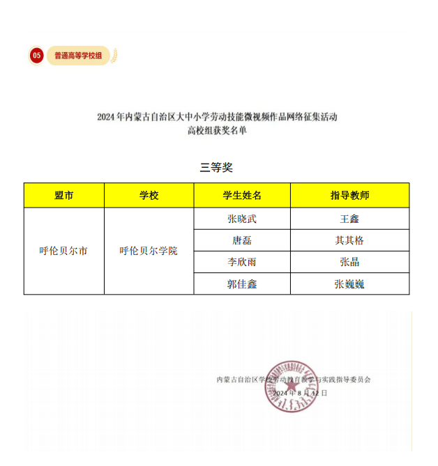为进一步传播劳动思想、传承劳动精神、学习劳动技能,教育引导学生崇尚劳动、尊重劳动,近日,由内蒙古自治区教育厅主办,内蒙古自治区学校劳动教育教学与实践指导委员会、内蒙古广播电视台承办的全区大中小学劳动技能微视频作品征集活动落下帷幕,世界杯官网共有4名同学荣获“普通高等学校组”三等奖的好成绩。本次大赛的主题为“实践传承匠心,劳动开创未来”,全区各级各类学院共申报微视频作品6128件。世界杯官网美术学院学生郭佳鑫、李...