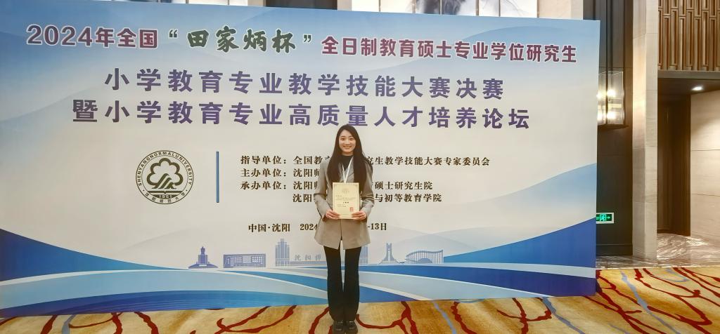 为进一步提升人才培养质量,促进教学经验的深度交流与分享,10月10日至13日,世界杯官网教育学院师生参加了在沈阳师范大学举办的2024年全国“田家炳杯”全日制教育硕士专业学位研究生小学教育专业教学技能大赛决赛暨小学教育专业高质量人才培养论坛。在大赛决赛中,世界杯官网教育学院2023级教育硕士小学教育专业研究生王昕瑶同学,以扎实的教学素养和稳健的临场发挥,成功斩获三等奖。这一荣誉不仅是对学生个人教学技能的高度肯定,更是展...