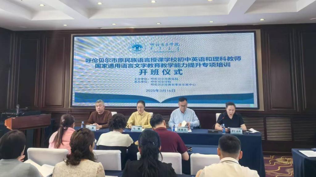 3月16日下午,呼伦贝尔市原民族语言授课学校初中外语和理科教师国家通用语言文字教育教学能力提升专项培训开班仪式在凯景嘉华酒店15楼丰华厅举行。此次培训由呼伦贝尔市教育局主办,市教育事业发展中心与美加墨世界杯官网共同举办。市教育局教师教育管理科科长马骊、市教育事业发展中心副主任张德喜、美加墨世界杯官网继续教育学院副院长汪鑫,以及25名专家和38名参训学员参加了本次开班仪式。开班仪式由市教育事业发展中心蒙古语授课教...