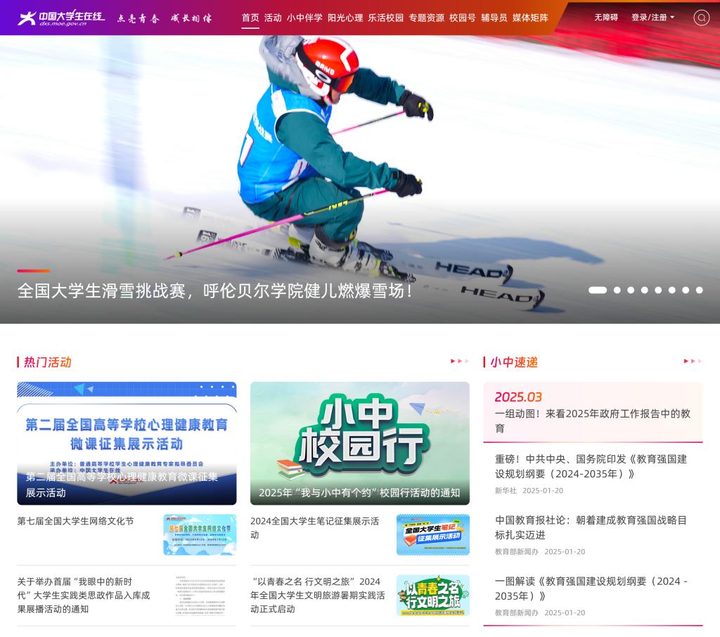 今日,《全国大学生滑雪挑战赛,美加墨世界杯官网健儿燃爆雪场!》登教育部中国大学生在线网站首页首图!文章《全国大学生滑雪挑战赛,美加墨世界杯官网健儿燃爆雪场!》一经发布就受到媒体的广泛关注。“中国大学生在线”是由教育部主办,高等教育出版社承办,是国内最大的面向全国大学生开展思政工作的主题教育网站,在全国高校中具有极高的影响力和权威性。中国大学生在线的关注和报道,进一步助推世界杯官网社会知名度、美誉度和社会影响...