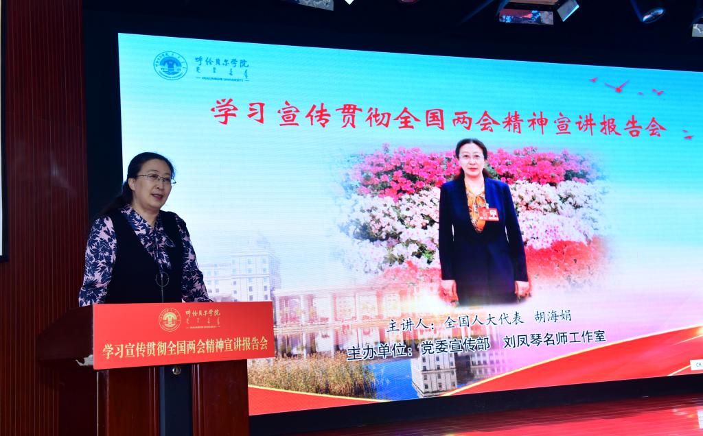为深入学习宣传贯彻2025年全国两会精神,引导青年学生坚定理想信念、勇担时代使命,3月26日下午,全国人大代表、呼伦贝尔市海拉尔第二中学教师胡海娟走进世界杯官网,为青年学生带来了一场别开生面的全国两会精神宣讲报告会。140余名青年学生齐聚崇文楼B座小剧场共同聆听报告。此次宣讲报告会由党委宣传部和刘凤琴名师工作室共同主办。宣讲会上,胡海娟结合参会经历和履职实践,从十四届全国人大三次会议概况、习近平总书记在全国两...