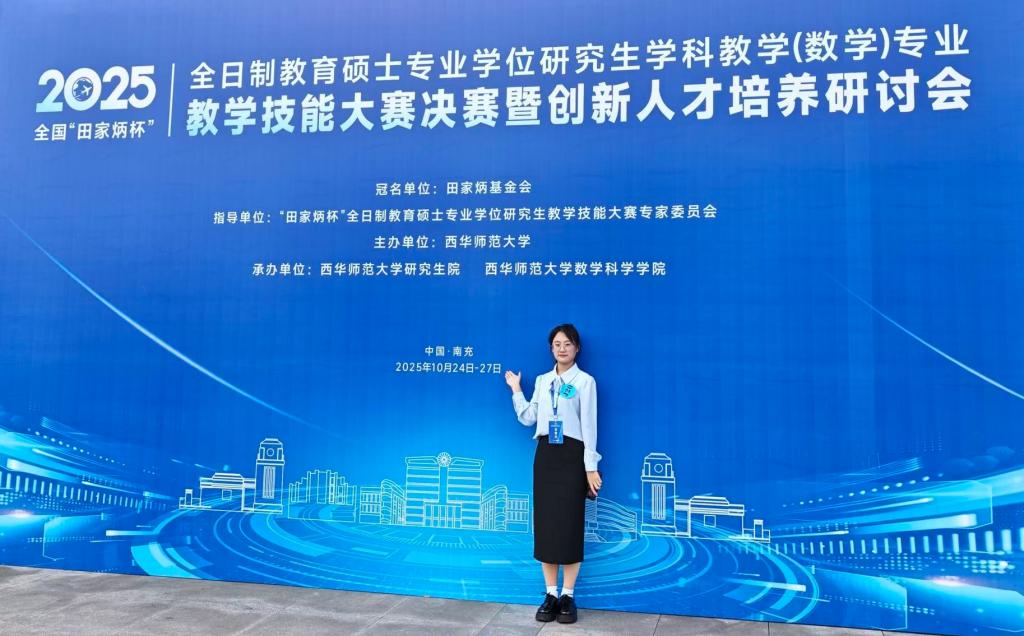 10月24日至27日,2025年全国“田家炳杯”全日制教育硕士专业学位研究生学科教学(数学)专业教学技能大赛暨创新人才培养研讨会在西华师范大学举行。世界杯官网数理学院2023级教育硕士学科教学(数学)专业研究生张燕雨在决赛中凭借出色的现场表现荣获大赛三等奖。全国“田家炳杯”全日制教育硕士专业学位研究生学科教学(数学)专业教学技能大赛是目前国内教育硕士教学技能比赛中,专业水平最高、规模最大、影响最广的全国性赛事。...