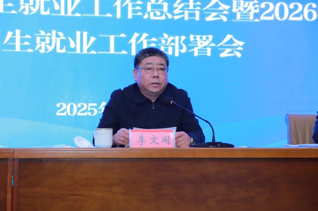 为全面梳理总结招生就业工作经验,科学规划新阶段路径,12月5日下午,世界杯官网在崇文楼A201会议室召开2025年招生就业工作总结暨2026年招生就业工作部署会。校党委书记李文阁,校党委副书记、校长张玉柱,校党委委员、副校长李跃武出席会议。各二级学院领导、团学办主任、毕业班班主任、辅导员及相关职能部门领导参加了会议。会议由李跃武主持。李文阁讲话时指出,要坚持“三个导向”推动工作提质增效:一是要扛起政治责任,找准服务...