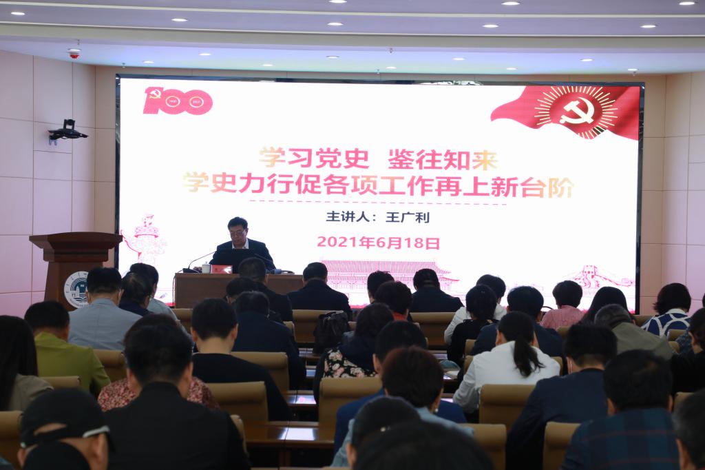 为深入推进学校党史学习教育,6月18日下午,校党委书记王广利围绕学史明理、学史力行作《学习党史 鉴往知来 学史力行促各项工作再上新台阶》专题党课,全校副处级以上领导干部参加了党课学习。王广利书记从学习党史的重大意义、党的百年历史发展脉络及启示、奋力推进学校各项工作再上新台阶等几个方面,深入讲述了中国共产党在新民主主义革命、社会主义革命和建设、改革开放、党的十八大以来四个时期的历史,深刻阐述了建党百年...