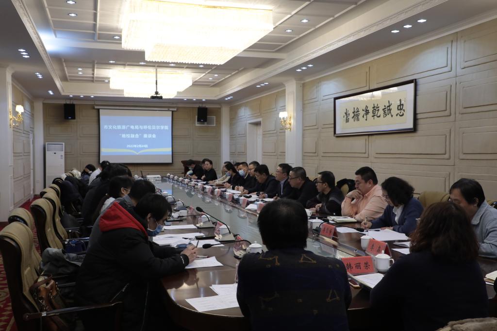 2月24日下午,学校与市文化旅游广电局在图书馆三楼报告厅召开“地校融合”座谈会,市文化旅游广电局党组书记、局长臧著强,副局长包海明、张本磊,呼伦贝尔市博物院院长白劲松以及市文化旅游广电局各相关科室负责人参加会议,学校党委书记王广利,党委委员、副校长孟祥宏、田振江,党政办、发展规划处、教务处等相关部门、9个学院负责人及部分教师参加座谈。孟祥宏副校长主持座谈会。王广利书记首先介绍了学校的基本情况,并对...